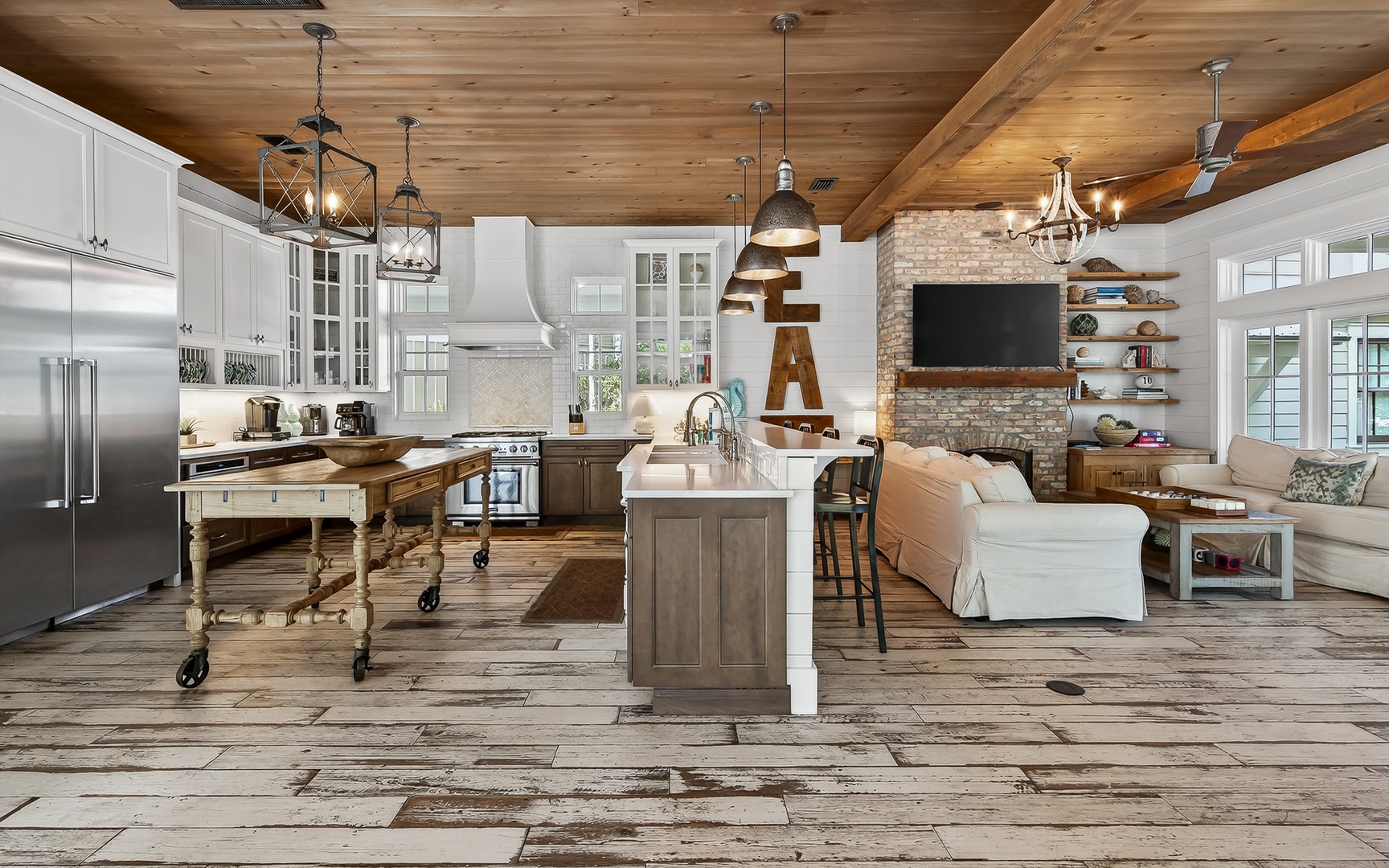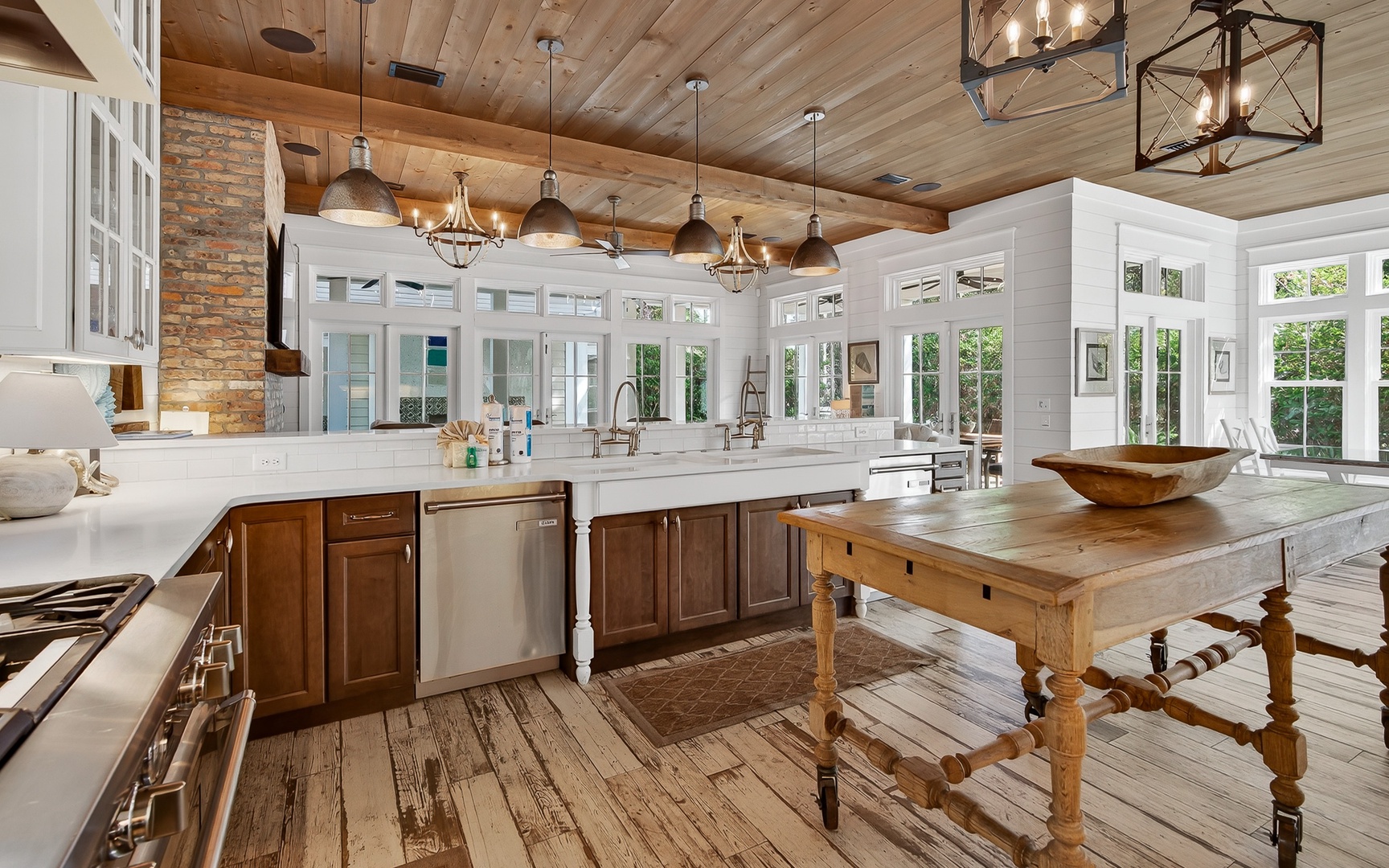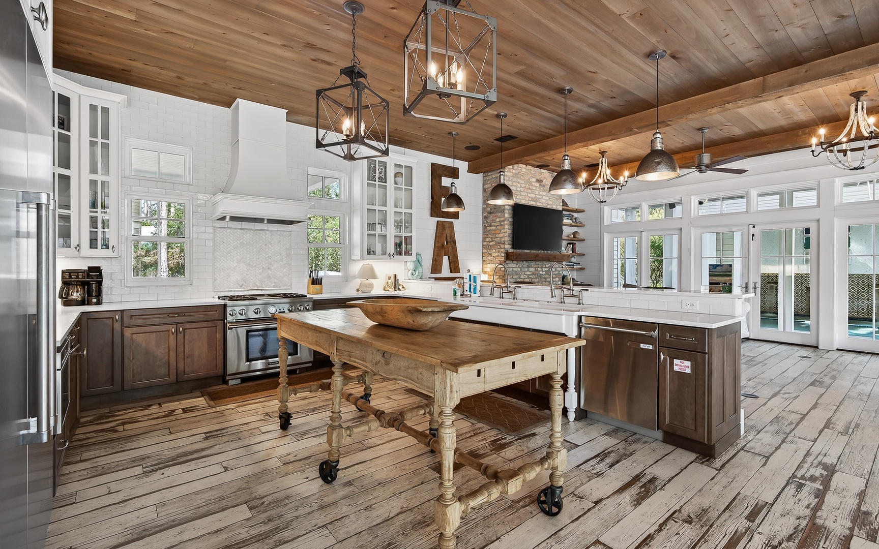 Multiple primary suites, bunk rooms for the kids, and quiet corners to recharge. The chef’s kitchen features double dishwashers, a movable island, and pro appliances. The separate carriage house provides even more privacy, complete with its own sitting area and kitchenette.