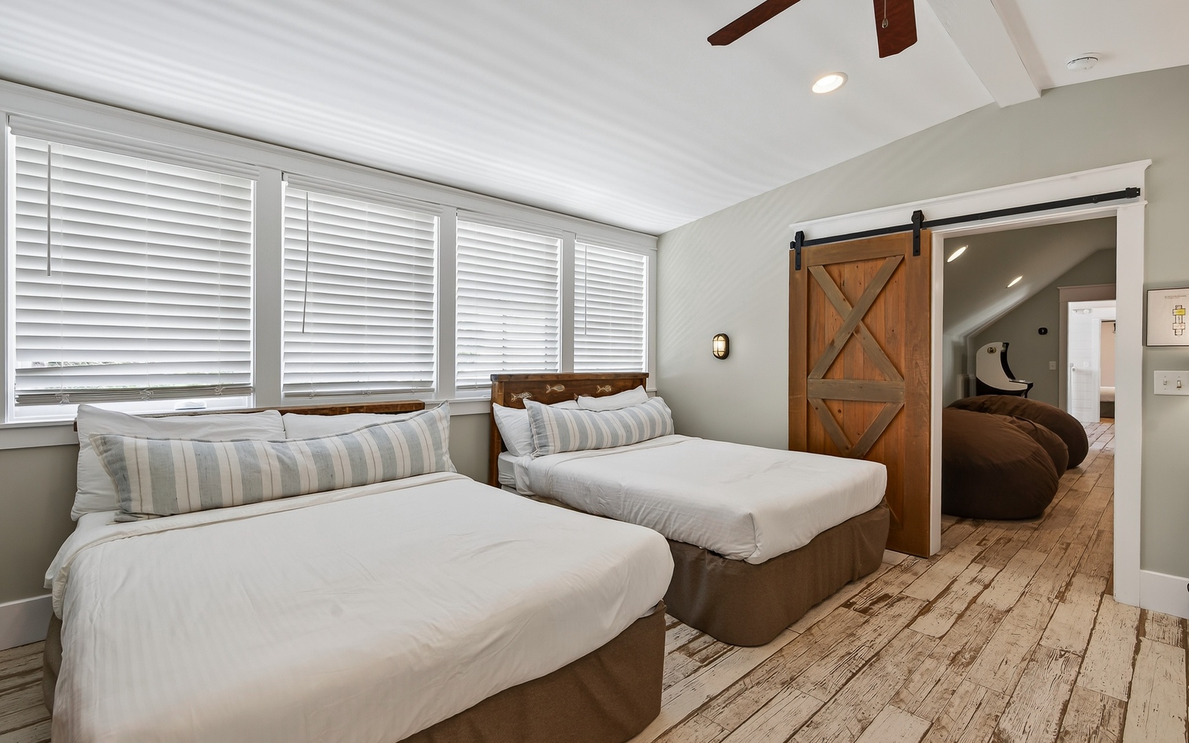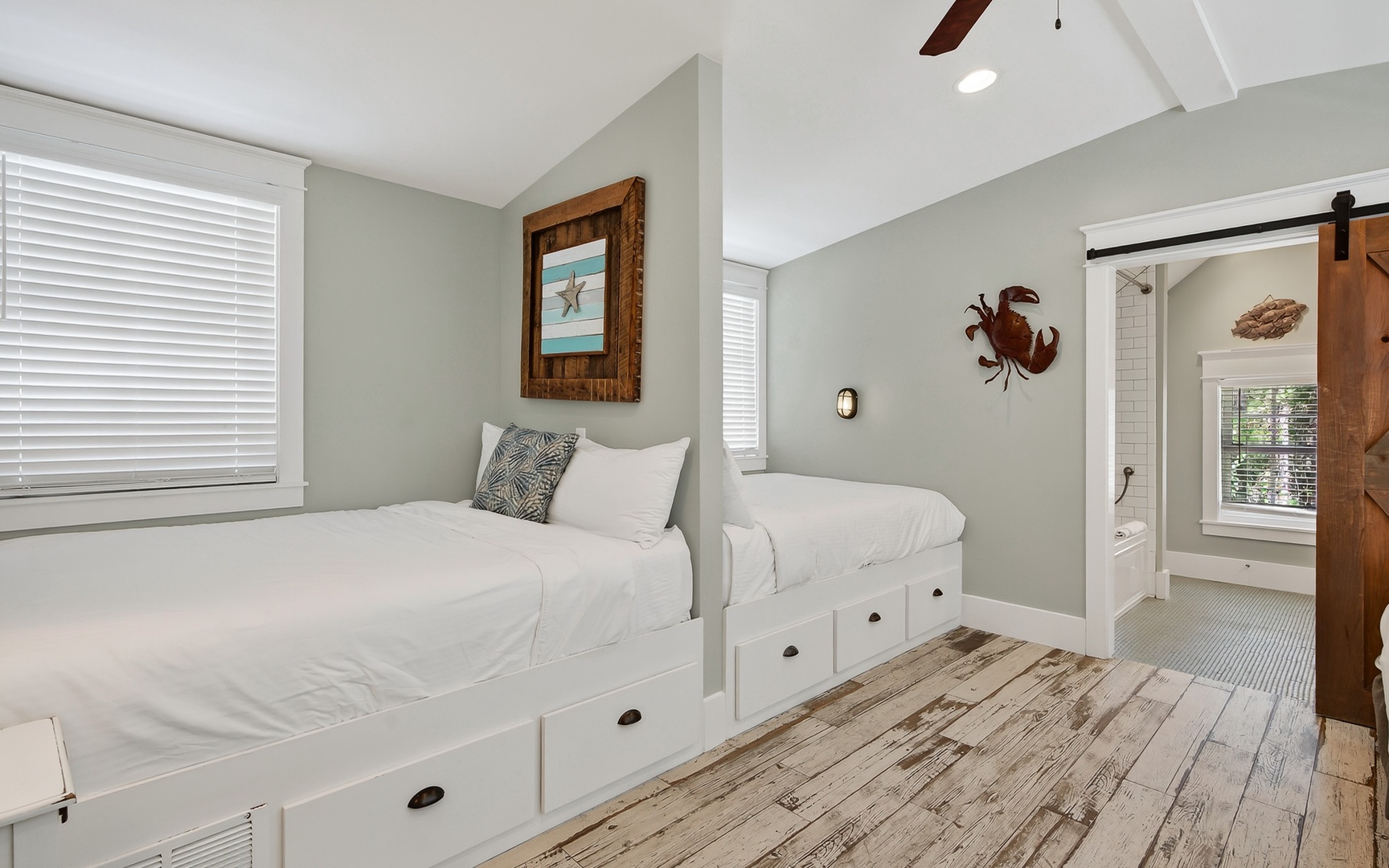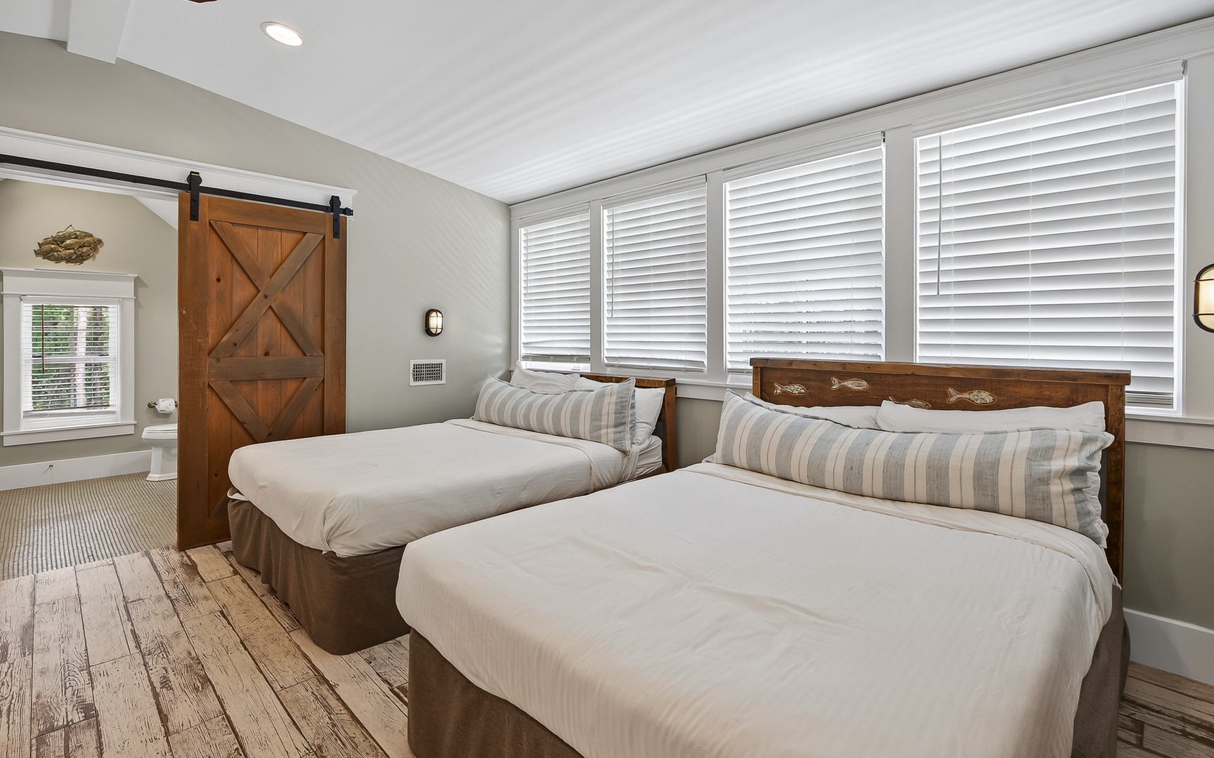 - Bunk/Guest Bedroom: 4 full beds/2 built-in, bathroom with shower/tub, no TV