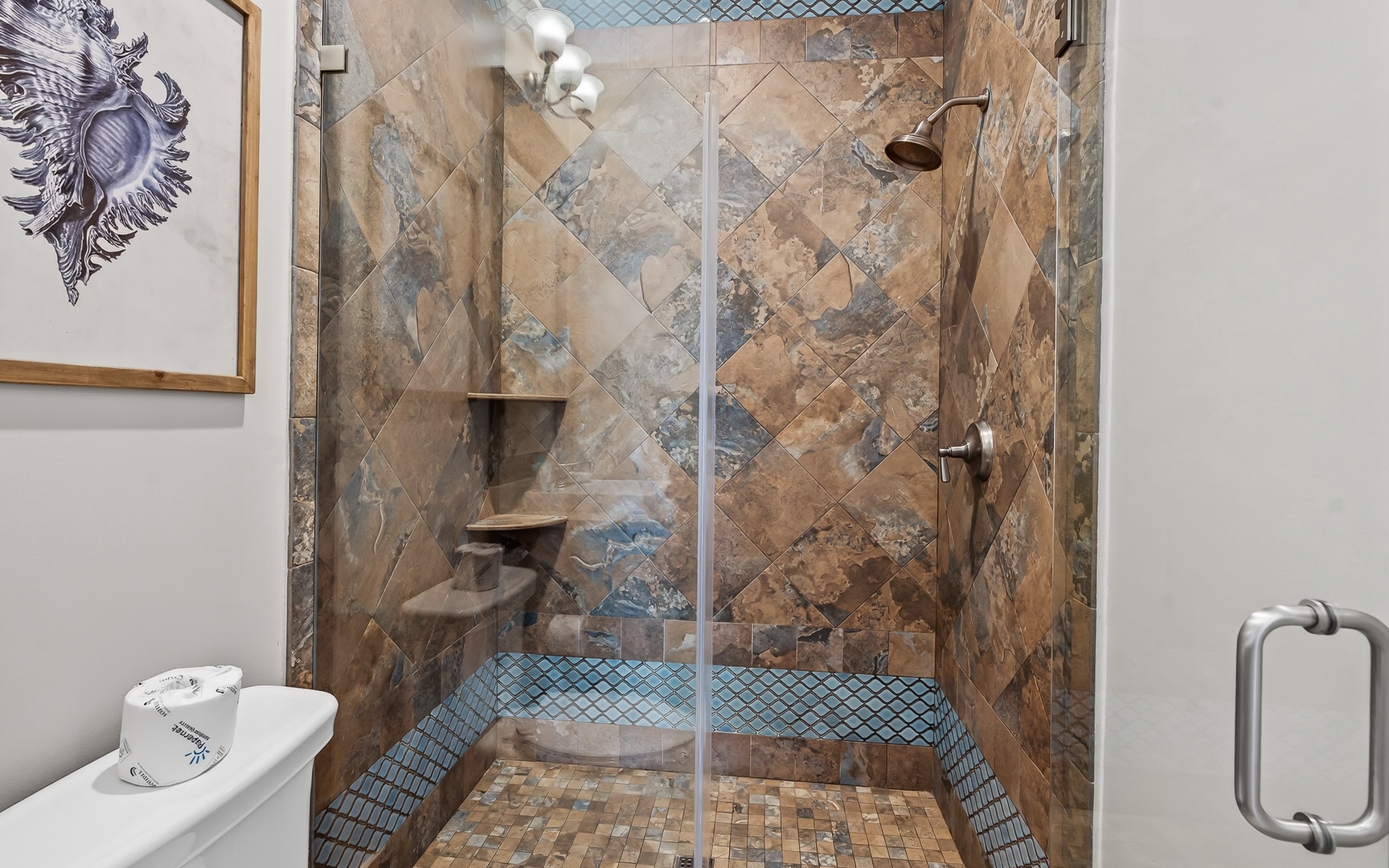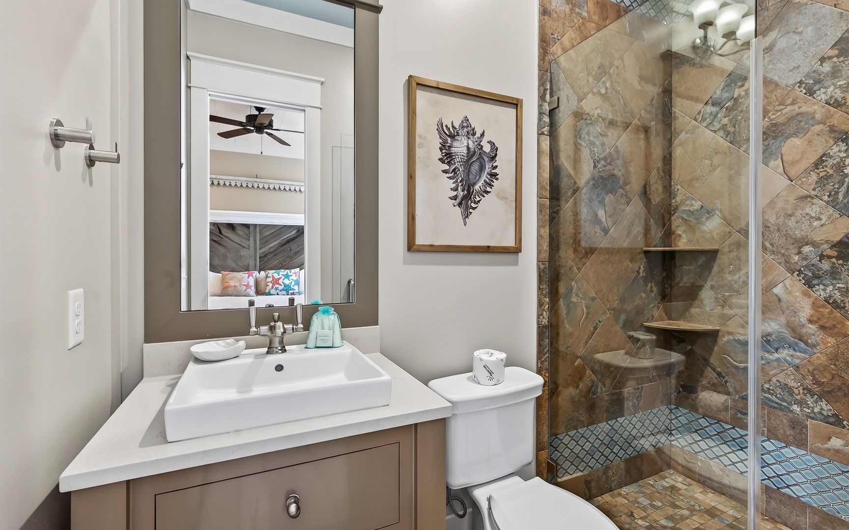 - Primary Bedroom: King bed, en suite bathroom, walk-in shower, TV