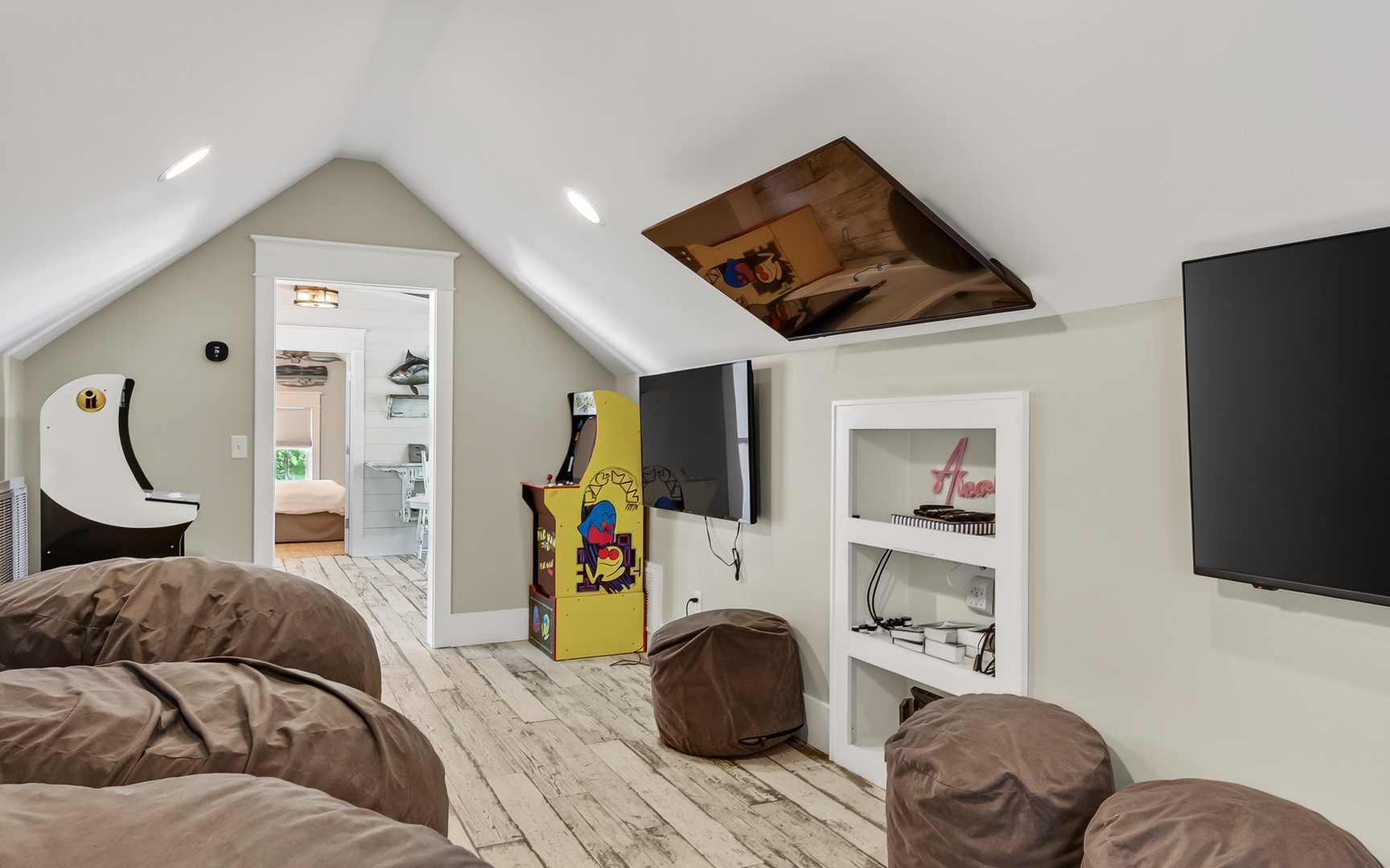 🕹️ Third-floor game room with 3 TVs & 3 arcade units
