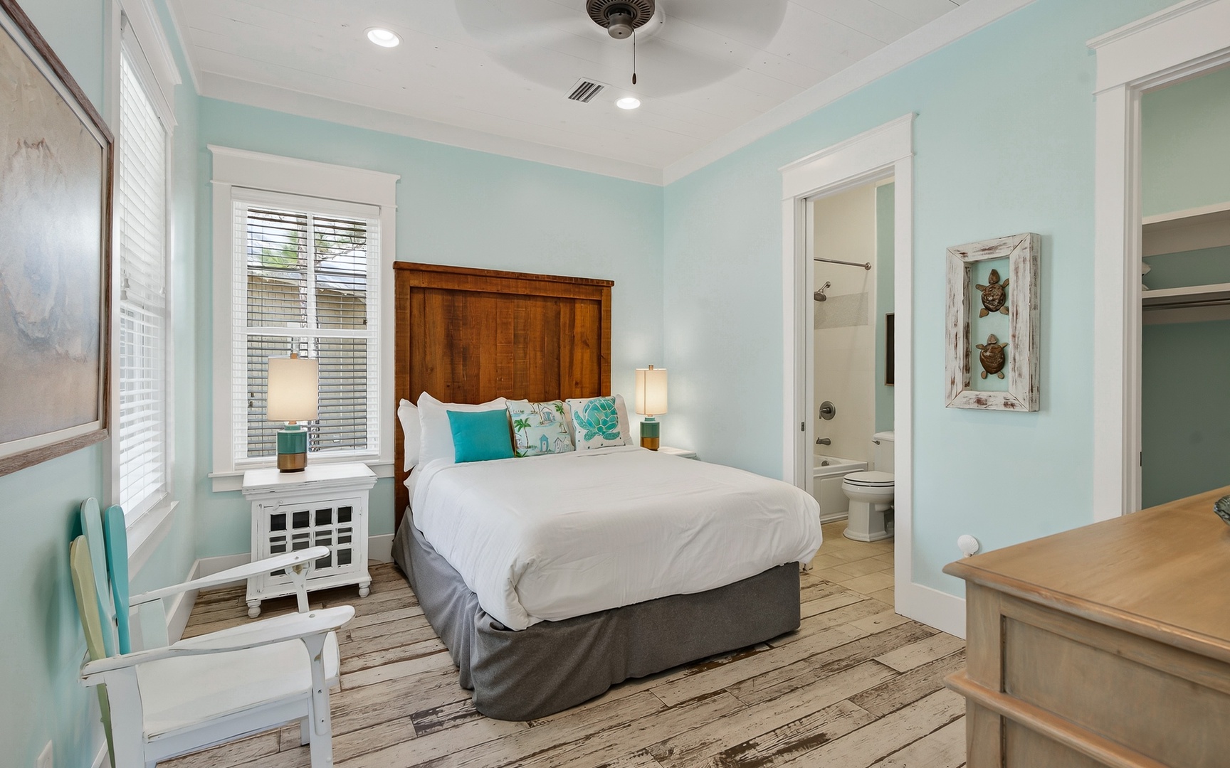 - Primary Bedroom: King bed, en suite bathroom, shower/tub combo