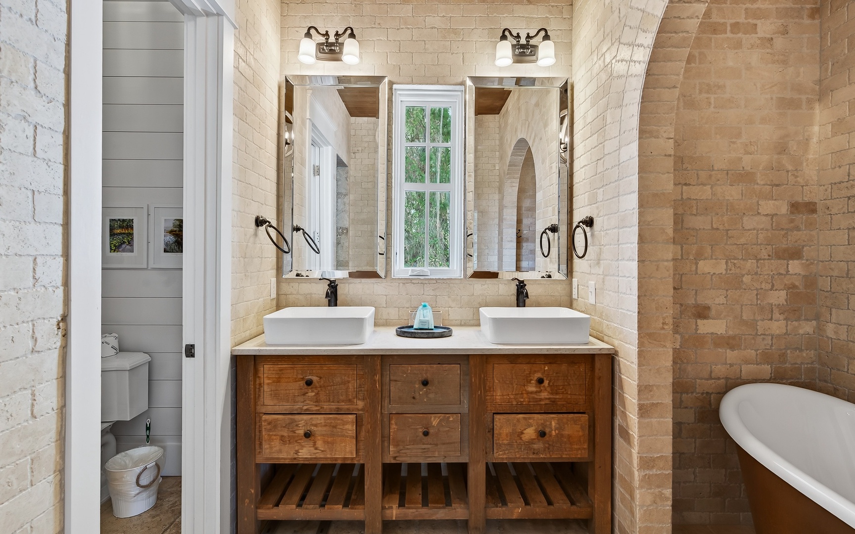 - Primary Bedroom: King bed, en suite bathroom, double vanity, walk-in shower, soaking tub,