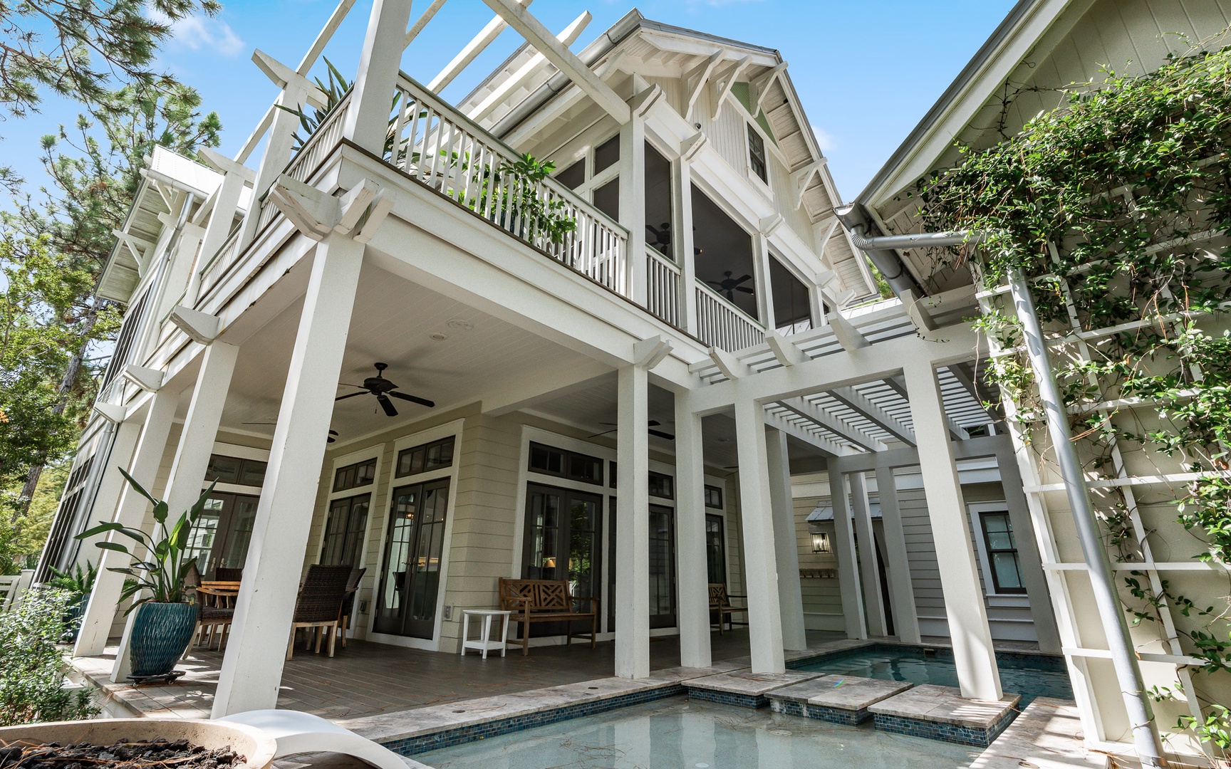 Watercolor Reunion is beyond stunning! This multi-level home has it all, from its gorgeous outdoor pool courtyard to its game room, multiple living spaces, carriage house, and spacious, comfy bedrooms. Very nice.