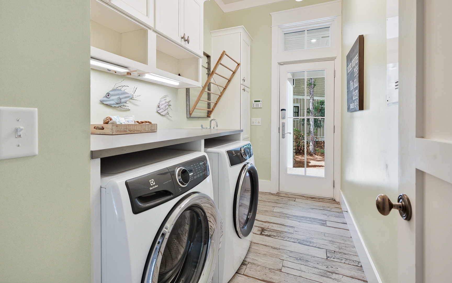 - Washer/dryer room with sink + counter space